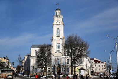 Zegar na wieży zwrócony jest ku czterem stronom świata i wybija czas dzwonami słyszalnymi w całej centralnej dzielnicy Witebska.
