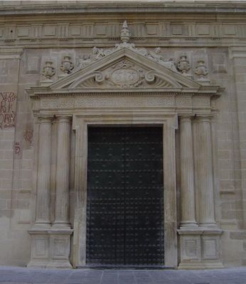 Osiem dużych posągów ojców kościoła i ewangelistów, rzeźbionych przez José de Arce w 1657 roku, znajduje się na ścianach bocznych. Te kamienne figury definiują zewnętrzny wygląd budynku i pokazują umiejętności artystyczne tamtych czasów.