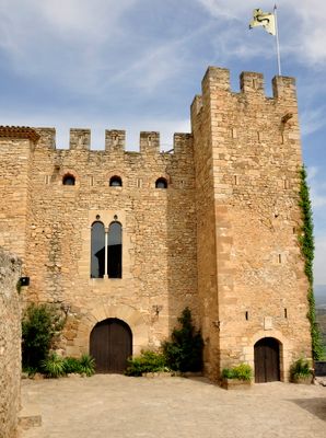 Castell de Montsonís to zamek położony na wysokości około 380 metrów nad doliną rzeki Segre w Katalonii, z murami obronnymi i wieżami zbudowanymi w różnych okresach. Struktura wykazuje wiele warstw konstrukcji i napraw, które odzwierciedlają, jak budynek był modyfikowany przez wieki.