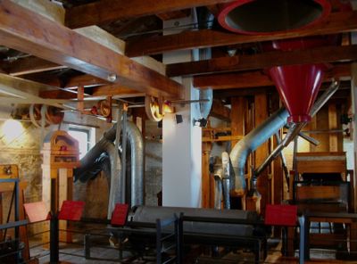 Muzeum zachowuje oryginalne maszyny do przetwarzania ryżu, które pokazują proces czyszczenia i sortowania ziarna przed dystrybucją.