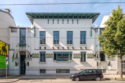 Budynek przedstawia przejście od dekoracji secesyjnej do abstrakcyjnych pasów geometrycznych w wiedeńskiej architekturze Jugendstil.