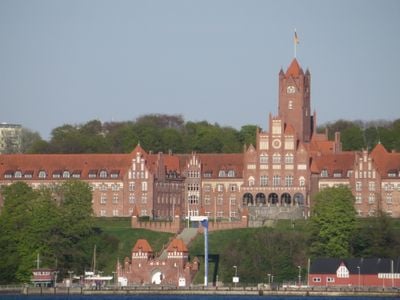 Akademia Morska w Mürwik prezentuje czerwoną ceglaną architekturę z gotyckimi elementami rozłożonymi w kilku budynkach wzdłuż wybrzeża Flensburga.