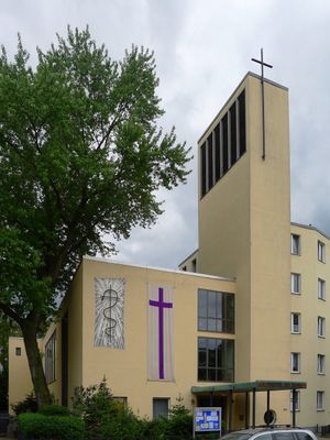 Melanchthonkirche znajduje się wzdłuż Kanału Landwehr przy Planufer 84, prezentując nowoczesną architekturę z salą wspólnotową i przestrzeniami dla młodzieży.
