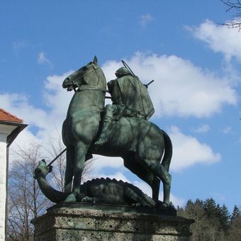 Denkmal, mit bayerischem Löwenwappen, Sandstein, um 1870/80