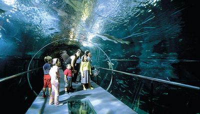Tunel z przezroczystymi ścianami pozwala odwiedzającym chodzić pod wodą i obserwować morskie stworzenia pływające bezpośrednio nad ich głowami. To doświadczenie tworzy natychmiastowy kontakt z życiem morskim.
