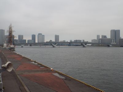 Most Toyosu-ohashi rozciąga się na 550 metrów nad Zatoką Tokijską, łącząc dzielnice Aomi i Ariake o maksymalnej szerokości 60 metrów.
