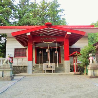 Ōtsuchi Inari-jinja to shinto świątynia w mieście Ōtsuchi, charakteryzująca się jasnoczerwonymi bramami torii, które zaznaczają ścieżkę prowadzącą do głównej sali. Teren zawiera drewniane struktury z łagodnie zakrzywionymi dachami, otoczone drzewami i otwartymi przestrzeniami, z posągami lisów umieszczonymi w różnych punktach witryny.