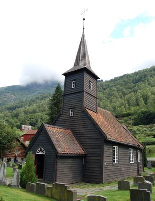 Flåm Church, Kościół zabytkowy w dolinie Flåmsdalen, Norwegia.