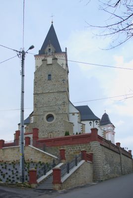 Kamienny kościół posiada neogotycką wieżę, barokową dzwonnicę oraz nawę główną podpartą przyporami konstrukcyjnymi przy zewnętrznych ścianach.
