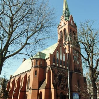 Kościół Garnizonowy Świętych Apostołów Piotra i Pawła w Gdańsku, Kościół neogotycki w centrum Gdańska, Polska.