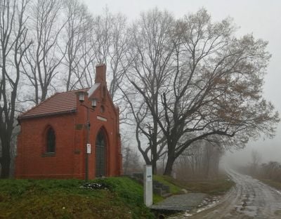 Kaplica Maria Hilf posiada konstrukcję z cegły klinkierowej z ostrymi łukami, sklepieniami żebrowymi i detalami architektonicznymi z początku XX wieku.