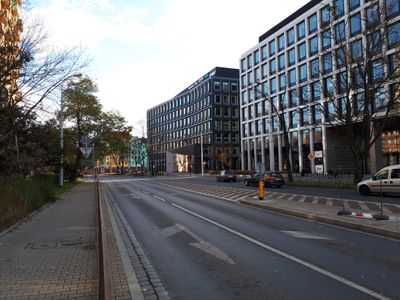 Ulica Szczytnicka przebiega przez centrum Wrocławia, łącząc budynki mieszkalne, przestrzenie handlowe i połączenia komunikacji miejskiej.