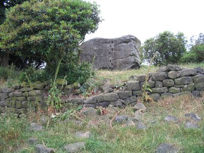 Głaz znajduje się wewnątrz okrągłego ogrodzenia z kamienia suchego na prywatnym terenie, pokazując przedrzymskie znaczniki miseczek i pierścieni.