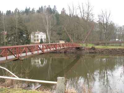 Lávka přes Ohři v Kyselce, lávka proti Švýcarskému dvoru, u zastávky Kyselka, pošta