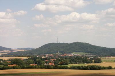 Löbauer Berg wznosi się na wysokość 448 metrów nad poziomem morza, z lasami dębowymi i grabowymi na wulkanicznej strukturze bazaltowej.