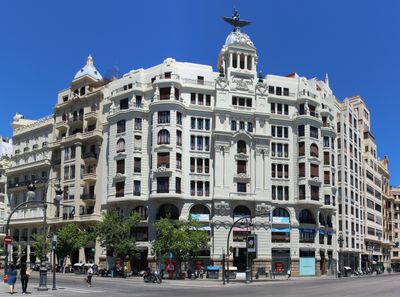 Budynek La Unión y el Fénix wznosi się na dziewięć pięter na skrzyżowaniu ulic Xàtiva i Marqués de Sotelo w Walencji.