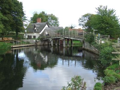 Bridge Cottage to jednopitrowy dom zbudowany okolo 1700 roku z tradycyjna architektura angielska, dachem ze slomy i drewnianymi scianami malowanymi na bialo. Budynek znajduje sie blisko rzeki Stour i kiedys miesCil wiele rodzin w swoich skromnych pokoach.