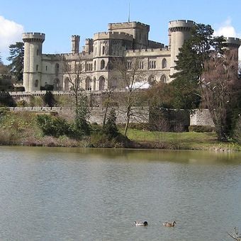 Zamek Eastnor wznosi się u podnóża wzgórz Malvern, otoczony parkiem z jeleniami, arboretum i jeziorem.
