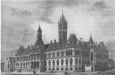 Gmach sądu w Manchesterze prezentował wenecką architekturę gotycką z wieżą o wysokości 85 metrów, dwiema dużymi salami sądowymi i kamiennymi rzeźbami.