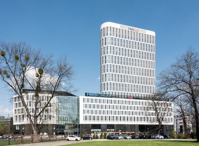 Kompleks łączy 90-metrową wieżę z dwoma 6-piętrowymi budynkami połączonymi przeszklonymi przejściami na wysokości 30 metrów.