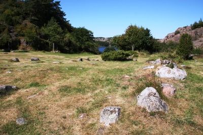 Kamienne fundamenty zamku z XV wieku znajdują się na klifie nad małą osadą Slottet, na południe od Hamburgsund.