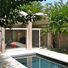 Rezydencja o powierzchni 647,5 metrów kwadratowych zawiera czerwone ceglane ściany, betonowe fundamenty i aluminiowe zadaszenia dla trwałości i funkcjonalności.