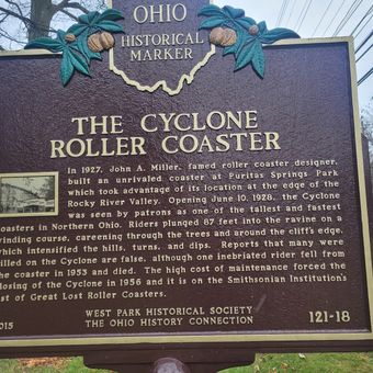 Strona internetowa: https://remarkableohio.org/marker/121-18-puritas-springs-park-the-cyclone-roller-coaster
