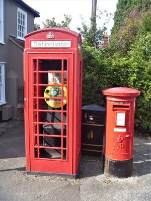 Telephone Kiosk, red telephone box in Castle Hedingham, Braintree, Essex, UK