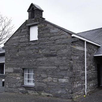 Former outbuilding of Plas Ynys Tywyn, Grade II listed building in Gwynedd. Set back from the street and attached to the Co-op supermarket