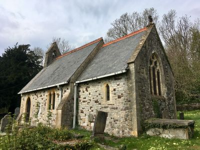 Church of St Elldeyrn at Capel Llanilltern, grade II listed building in Pentyrch, Set in a roughly rectangular walled churchyard sideways on to the main road, at junction with road to St Bride's-super-Ely