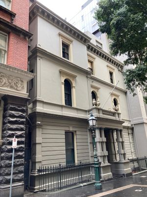Melbourne Savage Club mieści się w trzypiętrowym budynku wiktoriańskim z klasycznym portykiem z rustykalnymi kolumnami i zdobionymi wnętrzami.