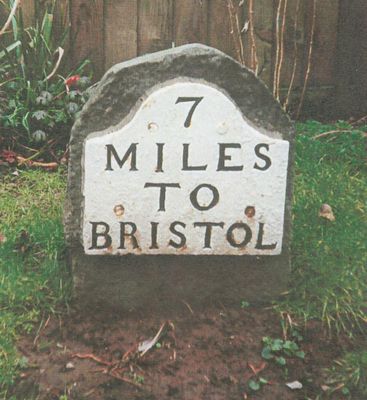 Milestone, Backwell village, short distance from crossroads, milestone in Backwell, North Somerset, UK