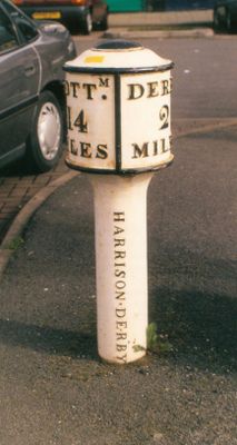 Milepost, Chaddesdon, shopping area, milepost in Derby, UK