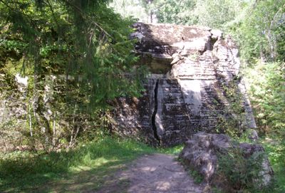 Betonowa fortyfikacja rozciąga się na 70 metrów długości i 11 metrów szerokości, z wieloma pozycjami obronnymi w środowisku leśnym.
