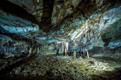 Marmurowa Jaskinia rozciąga się na 1260 metrów podziemnych korytarzy ze stalaktytami, stalagmitami i formacjami mineralnymi w komorach.