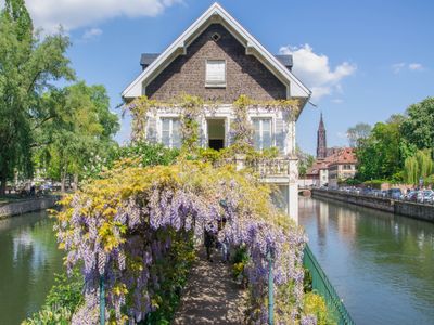 Kanały Spitzmühl i Duntzmühl rzeki Ill płyną po obu stronach budynku, tworząc jego charakterystyczne wyspiarskie położenie.