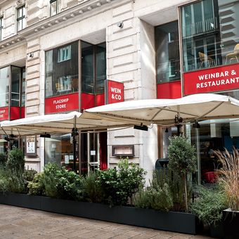 Wein & Co to restauracja i wyspecjalizowany sklep z winem w dzielnicy Innere Stadt, rozciągający się na trzech poziomach na około 800 metrów kwadratowych. Piwnica zawiera wybór ponad 1500 win, podczas gdy parter i piętra górne służą jako bar winny i jadalnia, gdzie podawane są wina oraz małe dania i przekąski.