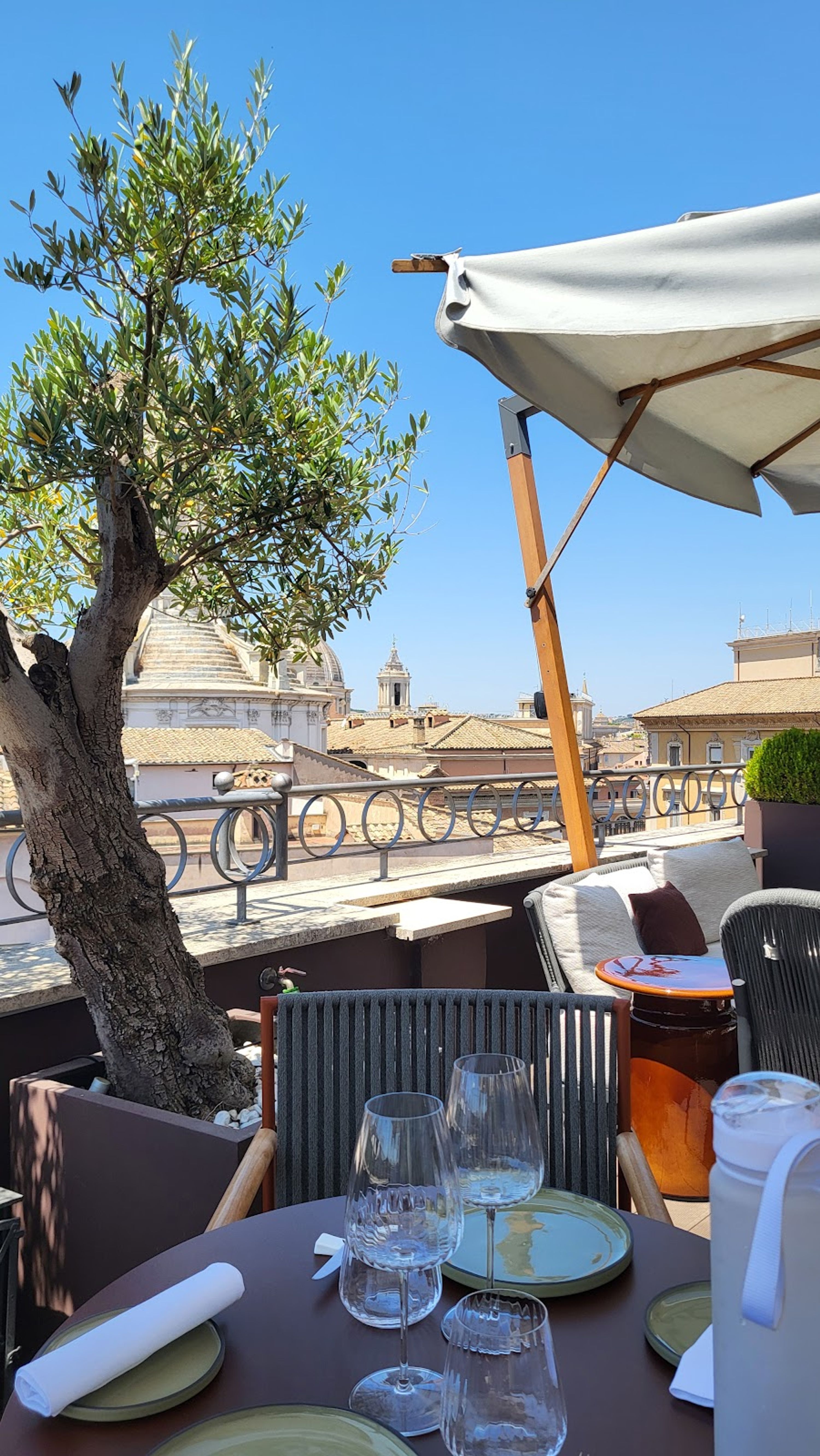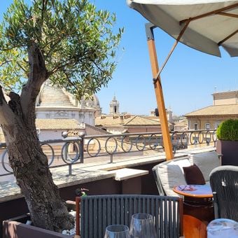 Położony w historycznym centrum Rzymu, taras wychodzi na krajobraz miejski ukształtowany przez ponad dwa tysiąclecia historii, z starożytnymi rzymskimi strukturami widocznymi z podniesionej przestrzeni gastronomicznej.