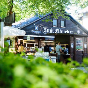 Ogród piwny Zum Flaucher posiada 1700 miejsc w strefie samoobsługowej i 80 miejsc na tarasie pod kasztanowcami i lipami.