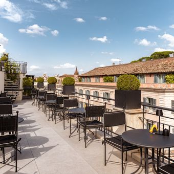 Taras posiada VIP strefę solarium na górnym poziomie i organizuje pokazy mody, wprowadzenia produktów oraz wydarzenia korporacyjne, oferując jednocześnie widoki na sześć głównych rzymskich zabytków.
