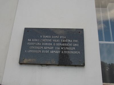 Pamětní deska podpisu dohody o demarkační linii v 2. světové válce v Netolicích