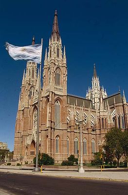 Katedra w La Plata to konstrukcja z czerwonej cegły wzniesiona w stylu neogotyckim, położona w sercu miasta naprzeciwko Plaza Moreno i ratusza. Jej dwie wieże wznoszą się ponad 110 metrów, dominując płaską linię horyzontu wokół placu.
