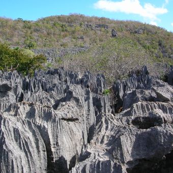 Powierzchnia wapniowa wykazuje ostre, iglowacie punkty stworzone przez erozje kwasowa deszczowej wody, tworz ac niezwykla i charakterystyczna teksture geologiczna. Ten pofarbowany teren stanowi idealny habitat do wspinaczki dla lemurów koronowych, które zyjaje sie w rezerwacje.