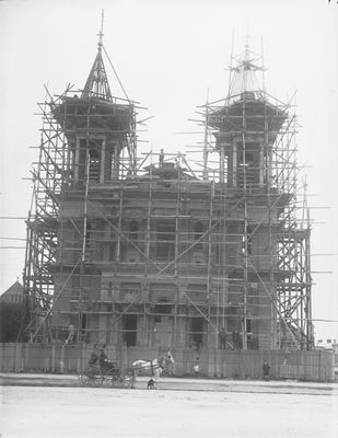 Ceremonia położenia kamienia węgielnego w 1912 roku zgromadziła 10.000 osób, rozpoczynając budowę zastępującą pierwszy kościół katolicki.