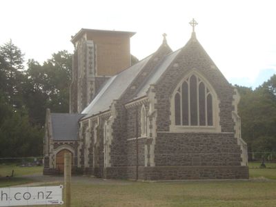 Kamienny budynek charakteryzuje się konstrukcją z drewna kauri i totara, z dzwonnicą górującą nad okolicznym wiejskim krajobrazem.
