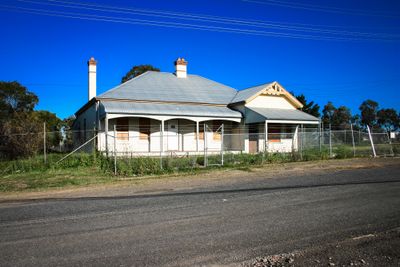 Ceglany budynek posiada falisty żelazny dach i werandę wspartą na drewnianych słupach przy Tarlington Place 23.