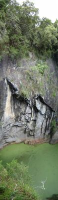 Powierzchnia wody u podstawy krateru pokryta jest rzęsą wodną, tworząc charakterystyczną zieloną powierzchnię widoczną z punktów obserwacyjnych.
