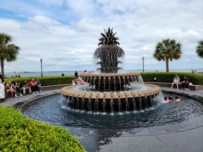 Waterfront Park to zielona przestrzeń wzdłuż rzeki Cooper z fontannami, drewnianymi mołami i ogrodami krajobrazowymi pod dębami i palmami karłowatymi. Teren obejmuje otwarte obszary do spacerów, siedzenia i obserwacji wody z różnych punktów.