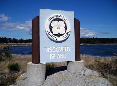 Park Prowincjonalny Discovery Island Marine rozciąga się na 61 hektarach z żwirowymi plażami, lasami jodłowymi i wodami bogatymi w gatunki morskie.