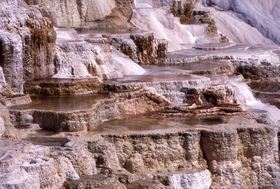 Mammoth Hot Springs to seria termalnych tarasów w Parku Narodowym Yellowstone z białymi wapiennymi schodami wypełnionymi wodą bogatą w minerały, osiągającą około 74 stopnie Celsjusza. Osady węglanu wapnia tworzą warstwowe formacje, które wyglądają jak zagnieżdżone baseny kaskadowo schodzące po zboczu.